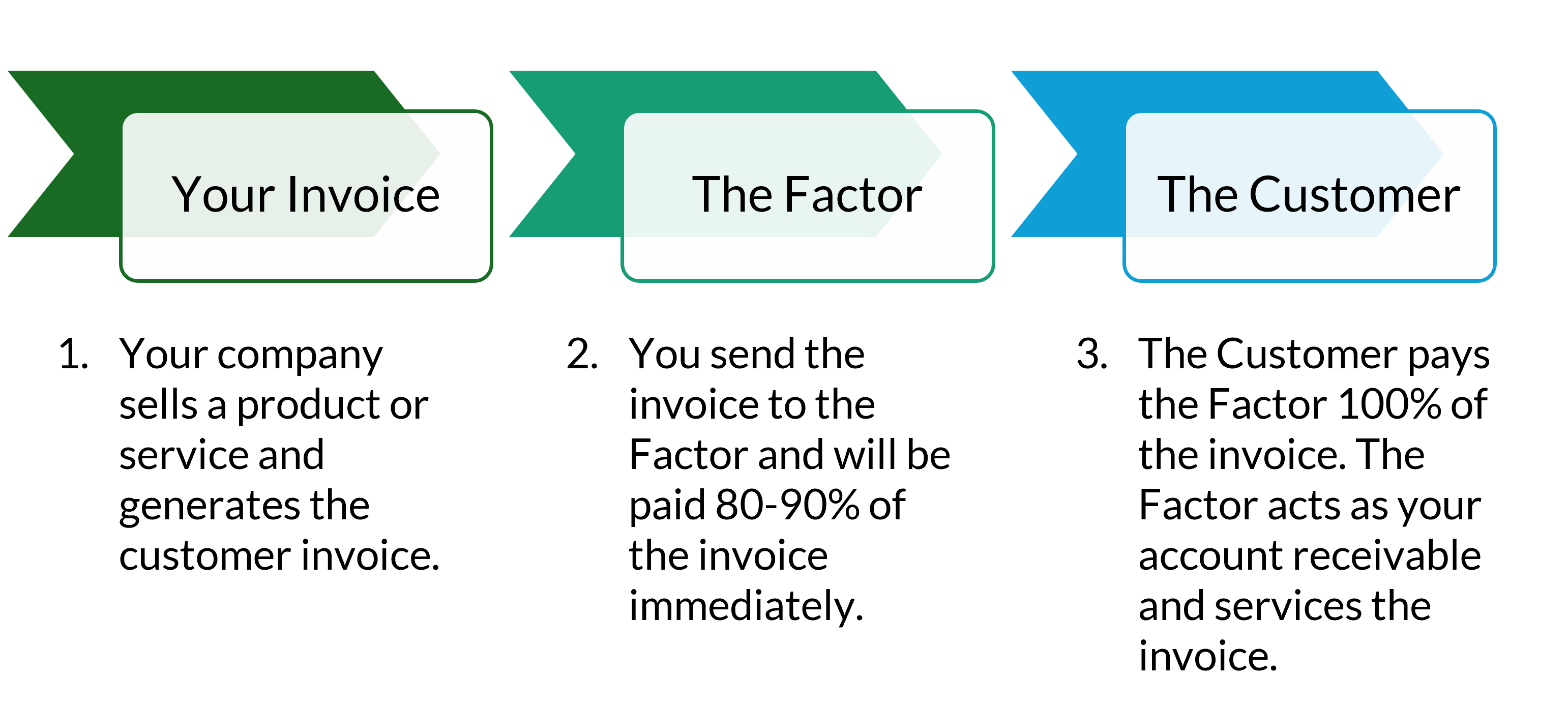 Factoring allows your business to sell its invoices at a discount to a third party to receive immediate funds